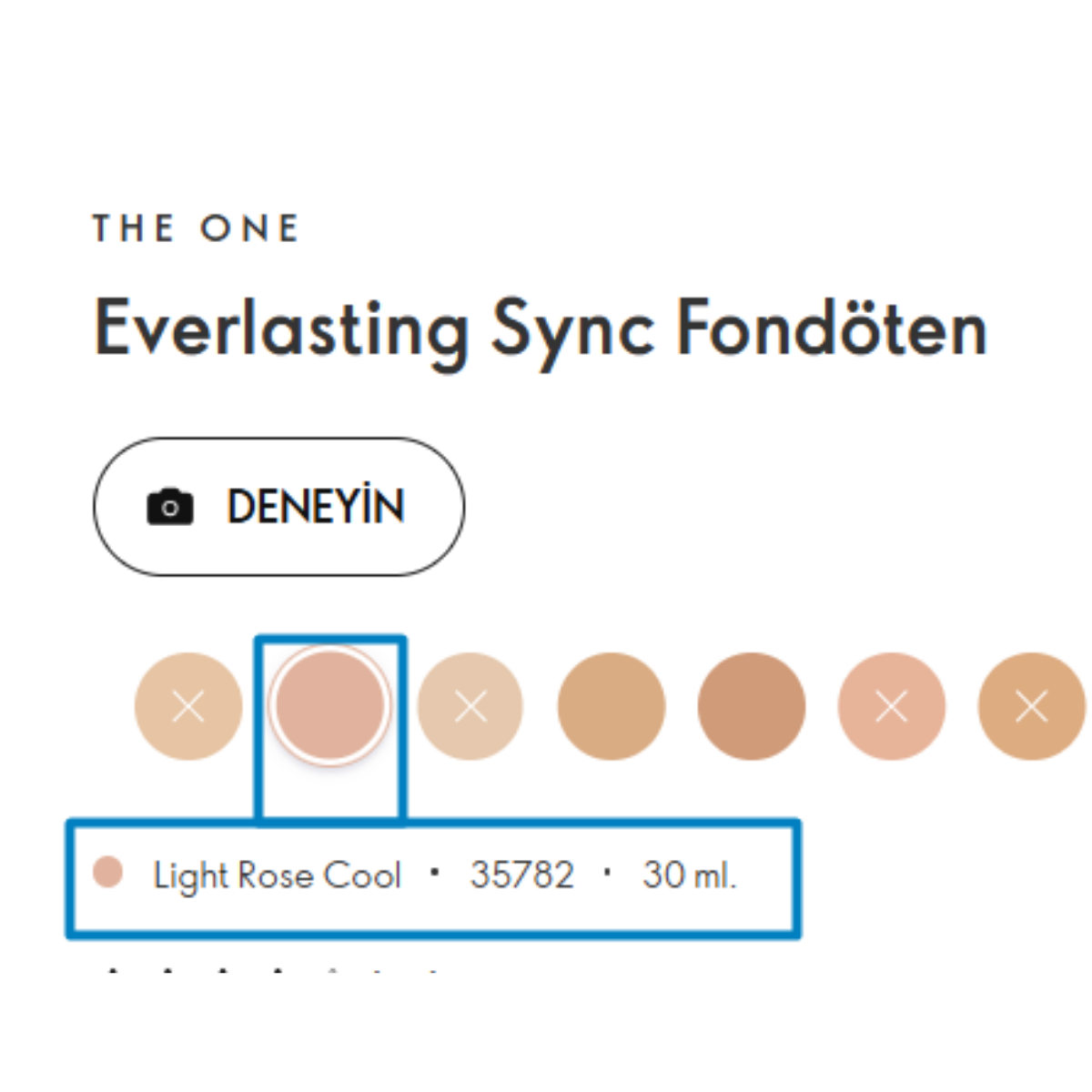 The One Everlasting Sync Uva Koruması Sağlayan Suya Dayanıklı Fondöten 30 Spf Light Rose Cool 35782
